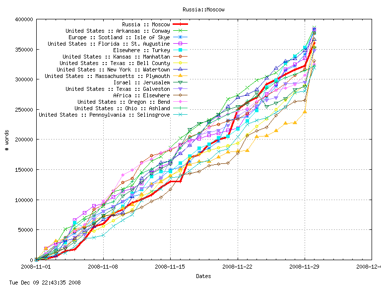 NaNoWriMo wcapi designed by Tim Yao (aka NewMexicoKid) and Russ Uman (firebus). Disclaimer: this is not an official NaNoWriMo site but instead is a service provided by NMK for NaperWriMo