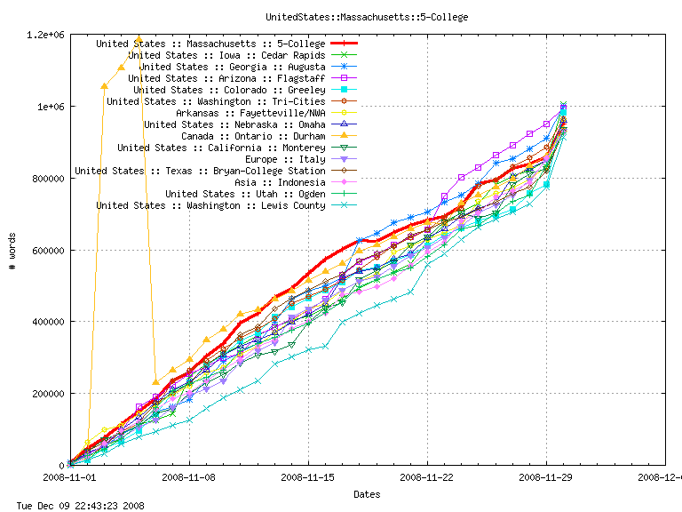NaNoWriMo wcapi designed by Tim Yao (aka NewMexicoKid) and Russ Uman (firebus). Disclaimer: this is not an official NaNoWriMo site but instead is a service provided by NMK for NaperWriMo