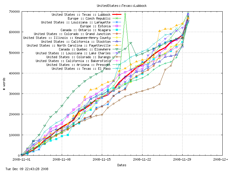 NaNoWriMo wcapi designed by Tim Yao (aka NewMexicoKid) and Russ Uman (firebus). Disclaimer: this is not an official NaNoWriMo site but instead is a service provided by NMK for NaperWriMo