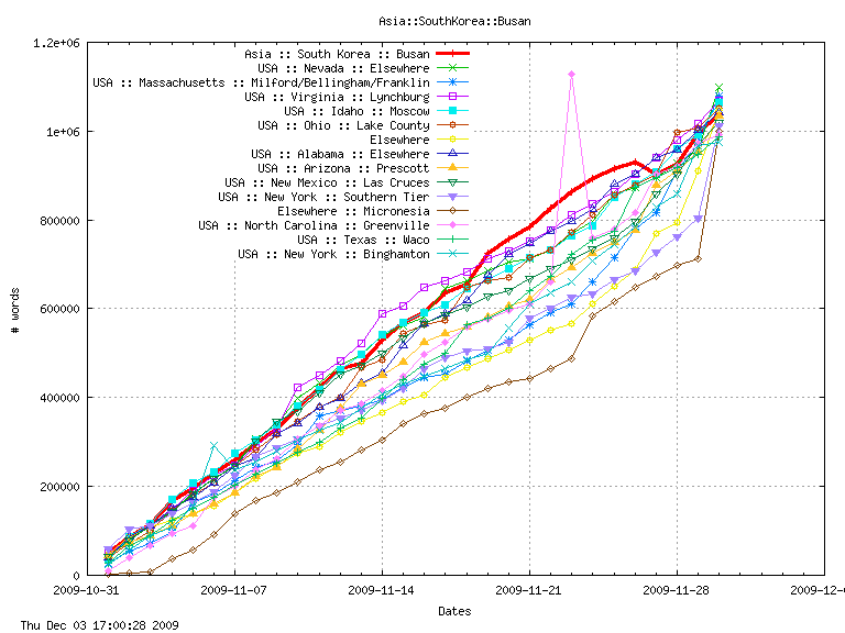 NaNoWriMo wcapi designed by Tim Yao (aka NewMexicoKid) and Russ Uman (firebus). Disclaimer: this is not an official NaNoWriMo site but instead is a service provided by NMK for NaperWriMo