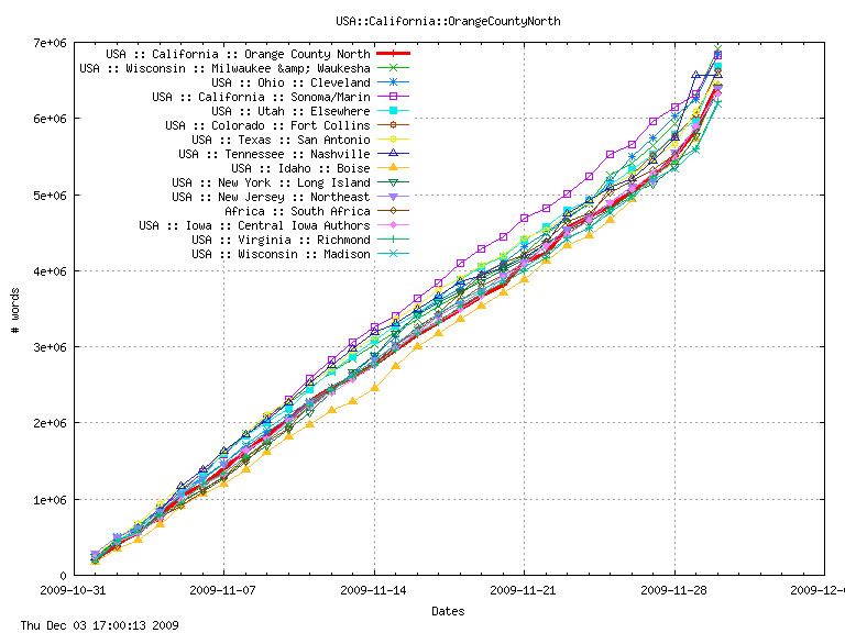 NaNoWriMo wcapi designed by Tim Yao (aka NewMexicoKid) and Russ Uman (firebus). Disclaimer: this is not an official NaNoWriMo site but instead is a service provided by NMK for NaperWriMo
