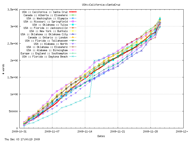NaNoWriMo wcapi designed by Tim Yao (aka NewMexicoKid) and Russ Uman (firebus). Disclaimer: this is not an official NaNoWriMo site but instead is a service provided by NMK for NaperWriMo
