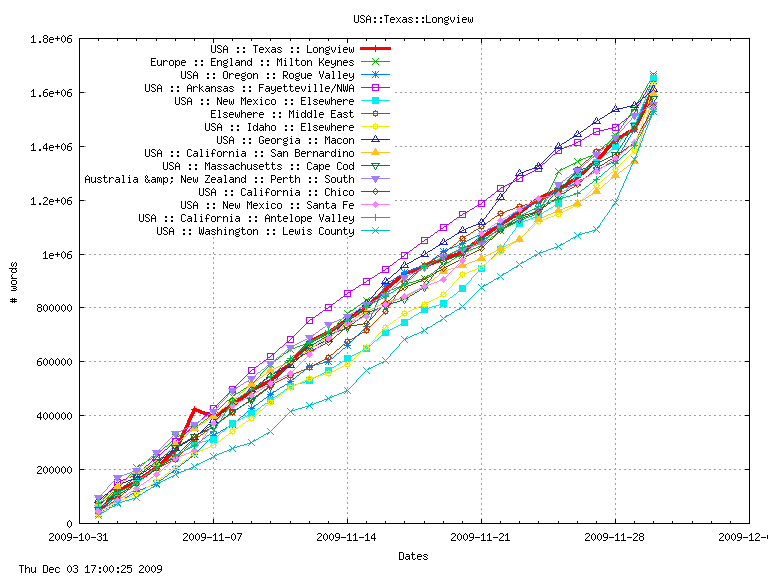 NaNoWriMo wcapi designed by Tim Yao (aka NewMexicoKid) and Russ Uman (firebus). Disclaimer: this is not an official NaNoWriMo site but instead is a service provided by NMK for NaperWriMo